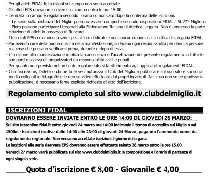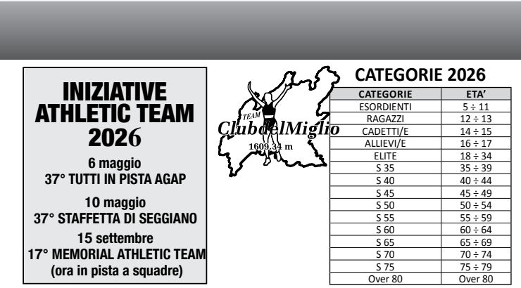 17/01 - Cross Sociale 07/02 - Trofeo Monga (prova finale) 03/05 - Tuttinpista AGAP e camp. regionale UISP 5000 m 17/05 - Memorial Pino Dammicco 13/11 - I 3 Parchi